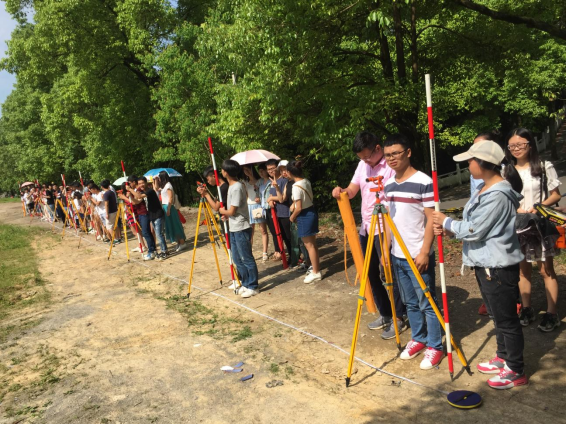 | 艾训儒教授、姚兰副教授、沈作奎副教授组织学生开展罗盘仪、全站仪操作技能大赛 |