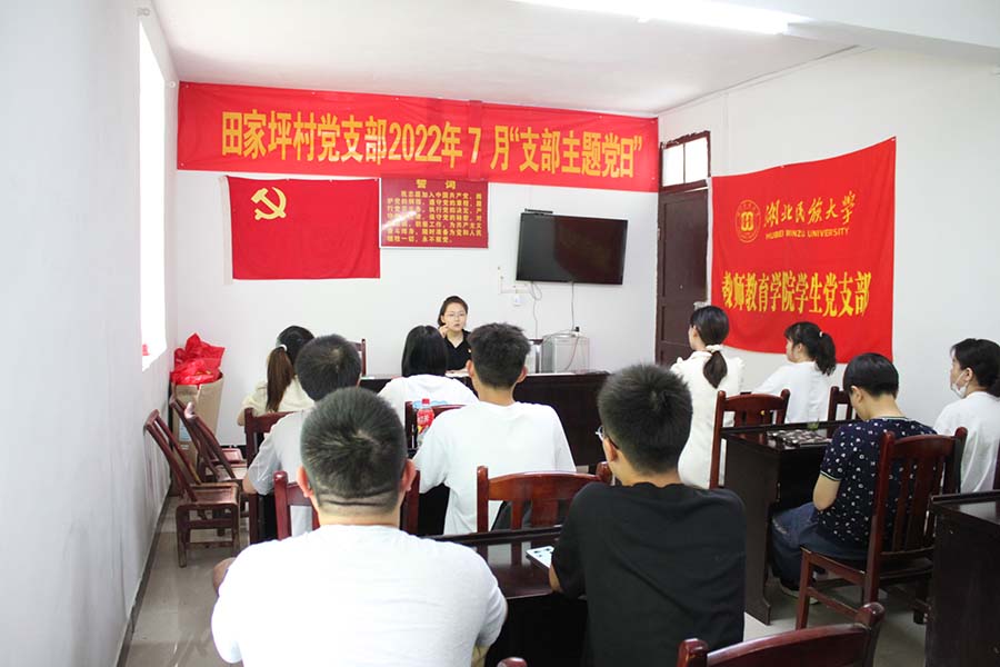 田家坪村党支部是建始县红旗党支部。教师教育学院组织学生党员走进田家坪村,与农村党员联合举办主题党日活动,旨在引导青年学子重温入党初心、牢记入党使命、赓续红色基因,结合下基层察民情解民忧暖民心实践活动深入乡村振兴第一线,在田间地头将理论学习与社会实践紧密结合,到广阔天地把党史学习教育成果转化为服务社会的实际行动。
