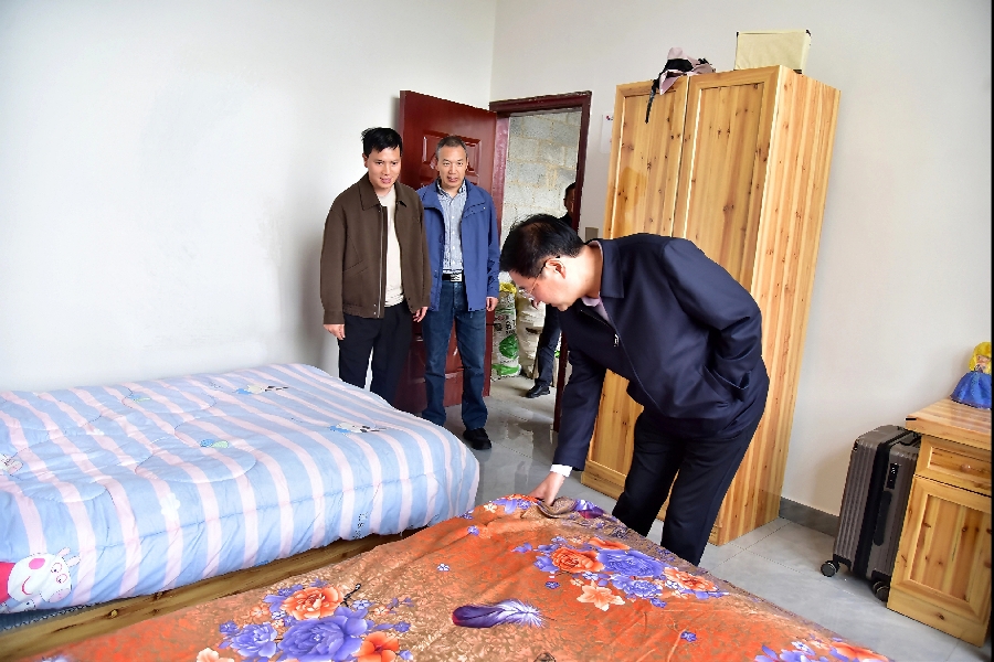 在郭兴友家二楼,梦想房间整齐明亮,两张1.2米的床、床头柜、衣柜、书桌均是实木打造,窗帘等配置齐全。“两个孙女欢喜得不得了,原来就是水泥地面,墙面也没有粉刷,暗沉沉的,现在又干净又敞亮,看着心里很舒服。”小孩的奶奶易银菊说。
