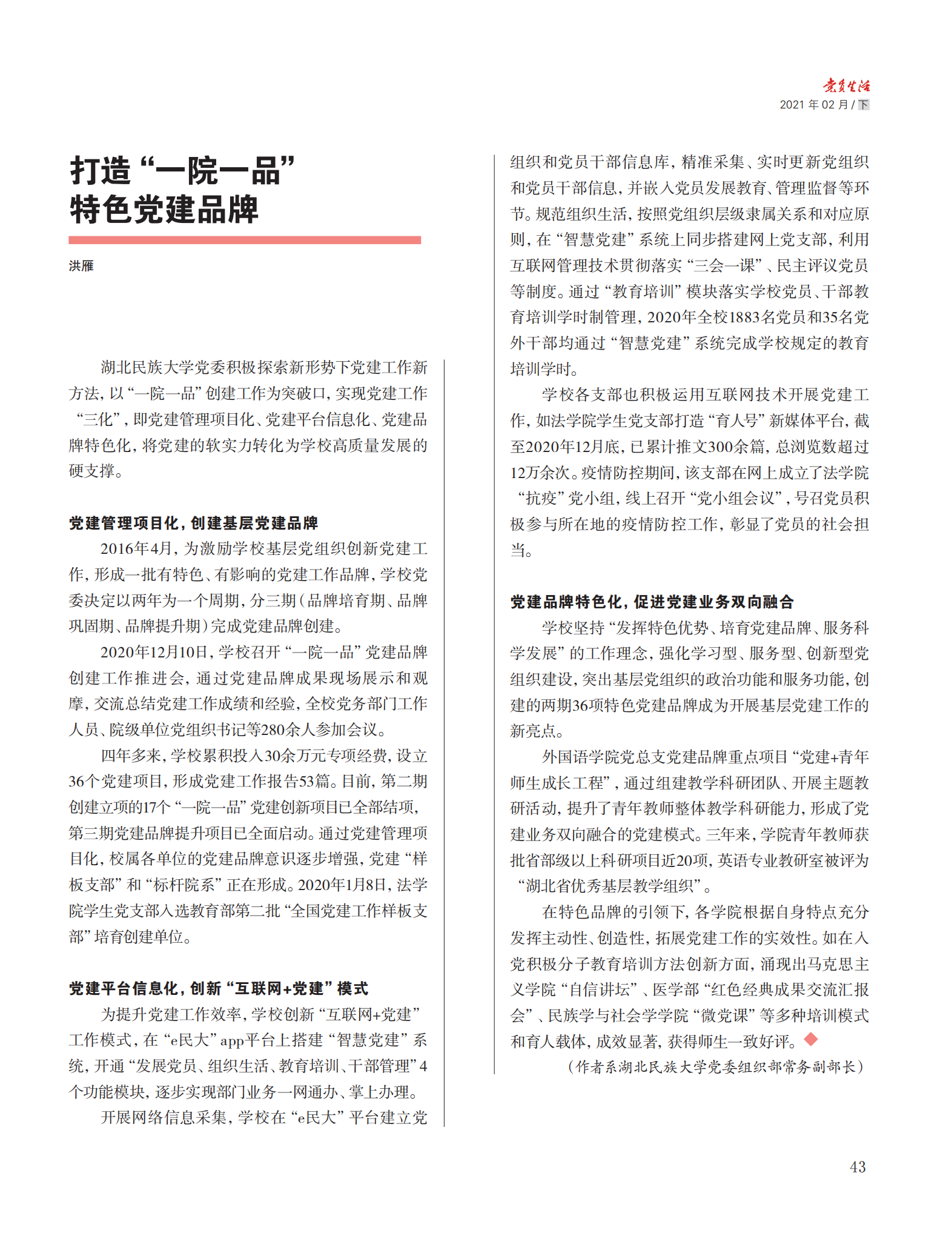 《党员生活》专题报道金年会“一院一品”党建品牌建设情况