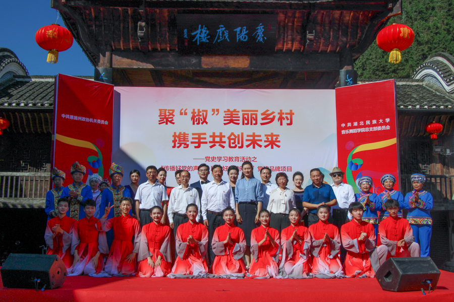 本网讯(通讯员 单家迪/文 记者 韦雨欣/摄)9月30日,金年会音乐舞蹈学院联合州政协机关前往宣恩县椒园镇庆阳坝村送文艺下乡,开展党史学习教育。州政协党组书记、主席吴建清,党组副书记、副主席张全榜,副主席刘晓冰出席,州政协职工及金年会音乐舞蹈学院师生共80余人参加活动。