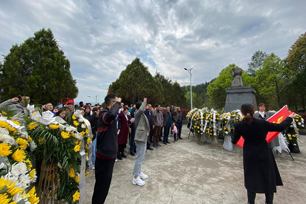 本网讯(记者 陆文静/文 牟玉立/摄)4月15日,数学与统计学院教师支部、研究生支部和本科生支部部分党员和入党积极分子前往方家坝烈士陵园革命烈士何功伟、刘惠馨纪念碑前,开展“缅怀革命先烈,传承红色精神”活动。